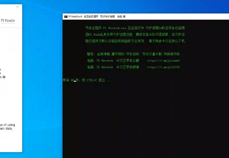因Pi Node自身未带守护进程功能 偶有发生未知闪退现象 此守护进程仅适用于默认安装到系统盘的节点有效 适用于无人值守 基于纯命令行批处理,未转换为exe这放心了吧,免费使用,不得用于商业盈利目的。