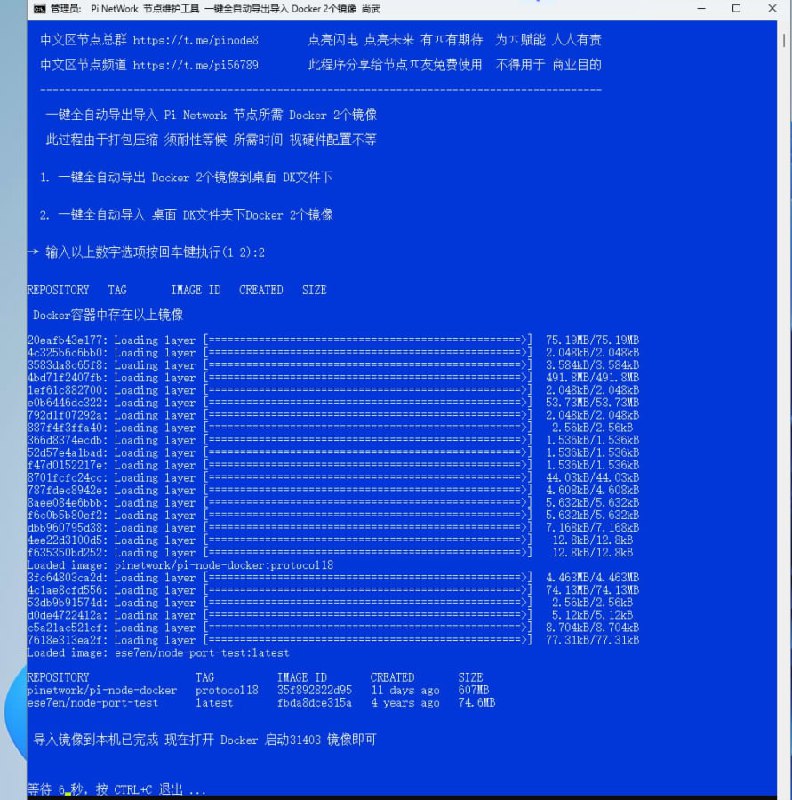 一键全自动导入导出 Docker 2个镜像
