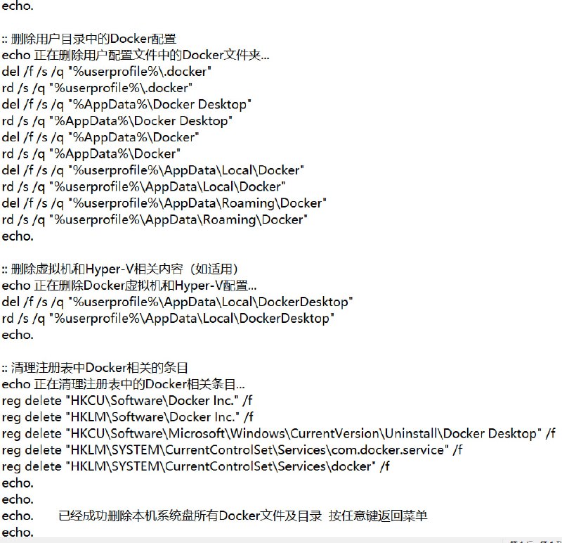 1.还是建议首先在控制面板去卸载 Docker,若确实遇到了未卸载干净才用这个一键删除程序